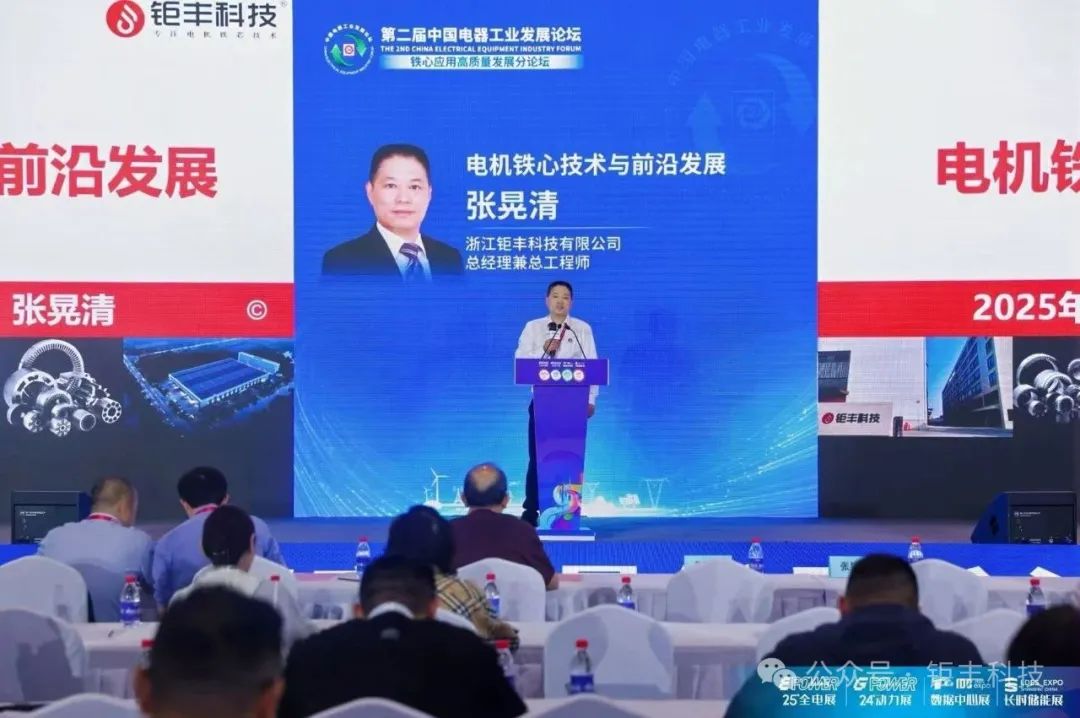 Tugadh cuireadh do Zhang Huangqing, bainisteoir ginearálta agus príomh-innealtóir Zhejiang Jufeng Technology Co., Ltd., freastal ar an tuarascáil dar teideal "Motor Iron Core Technology and Frontier Development". Bunaithe ar an méadú leanúnach ar éileamh an mhargaidh, rinne sé anailís dhomhain ar chonair theicniúil Iron Core chun freastal ar riachtanais feidhmíochta agus costais. Mhol na rannpháirtithe go mór a thuiscint dhomhain ar theicneolaíocht déantúsaíochta croí iarainn agus a thorthaí taighde is déanaí i réimse na déantúsaíochta croí iarainn. Mar ardán le haghaidh pórú agus bailiú mionlach tionscail agus buanna gairmiúla, tá Jufeng Technology ag cur chun cinn dul chun cinn leanúnach agus uasghrádú teicneolaíochta an tionscail. Leanfaidh Jufeng Technology de bheith ag cur le custaiméirí, tionscail agus an tsochaí.