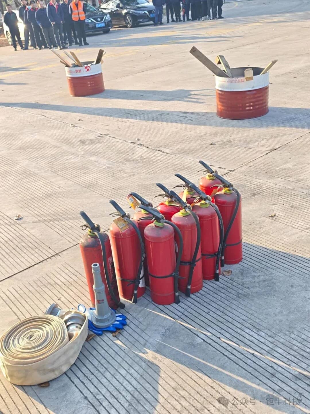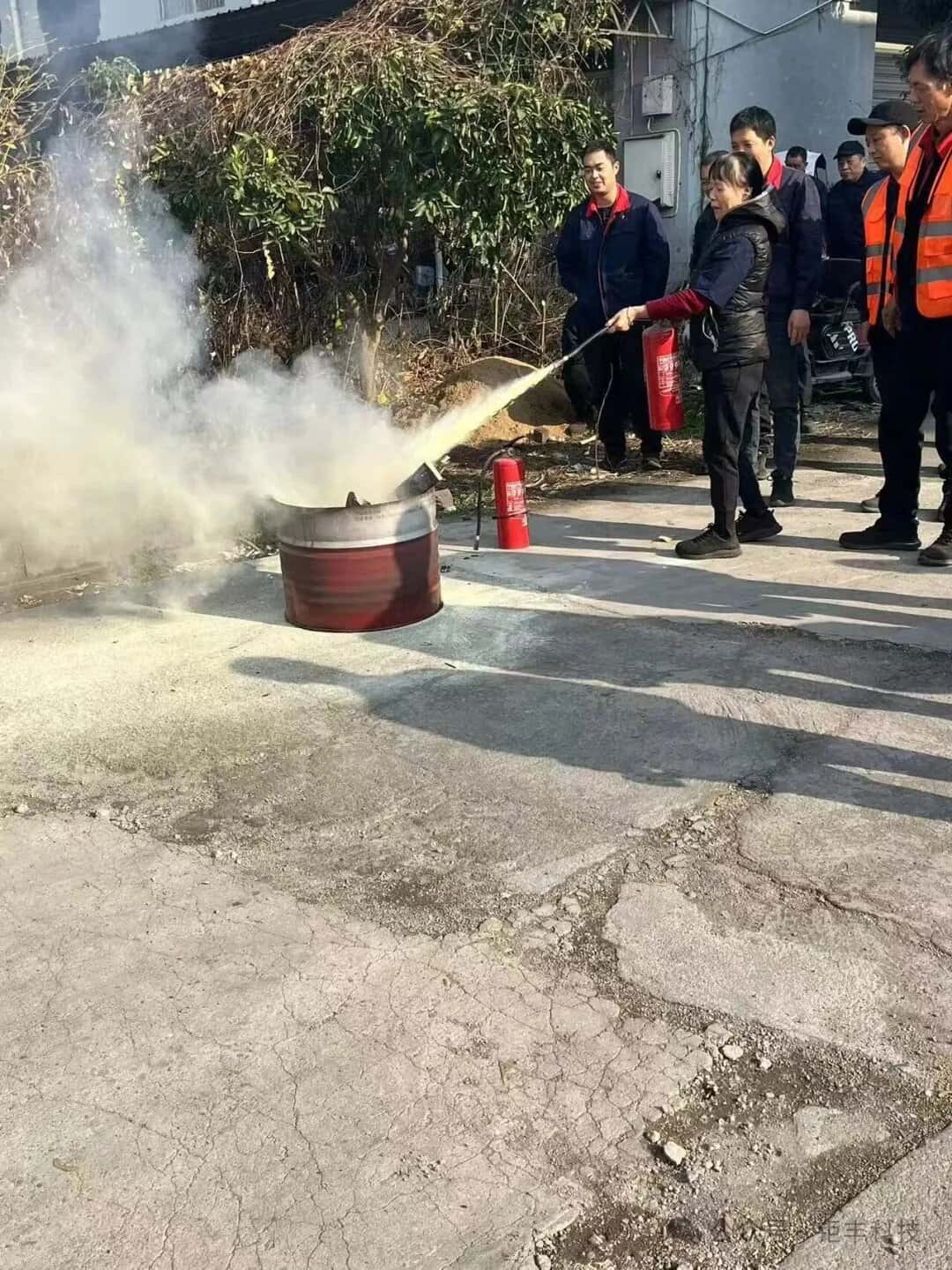 Ag deireadh an druil, rinne fostaithe i gceardlanna gach roinne cleachtaí praiticiúla chun múchtóirí dóiteáin a úsáid i gceart chun tinte a chur amach chun feabhas breise a chur ar úsáid na bhfostaithe as múchtóirí dóiteáin.