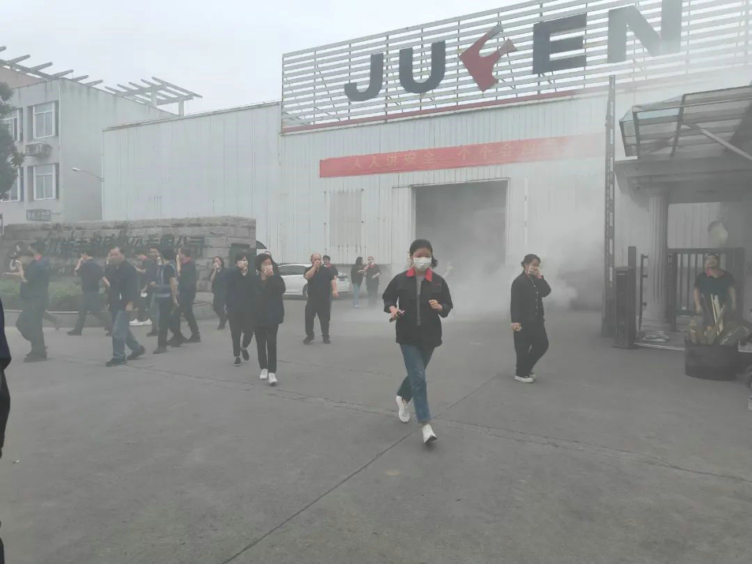 Roimh an druil, chuireamar plean druileála dóiteáin mionsonraithe le chéile agus rinneamar imscaradh dian. Dhíríomar ar fhíorchásanna a ionsamhlú chun mothú práinne agus réaltachta fostaithe a fheabhsú. Déanaimid insamhail deatach, insamhail radharcanna dóiteáin, etc., ionas gur féidir le fostaithe taithí a fháil ar bhrú cásanna dóiteáin fíor le linn druileanna.