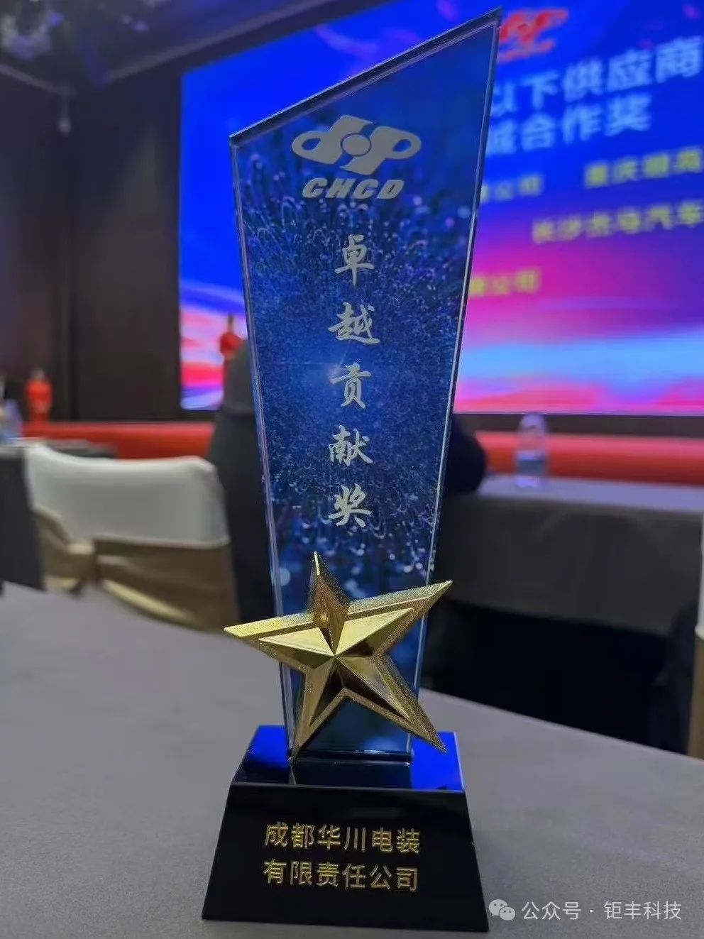 Ar 29 Márta, 2025, chuaigh ionadaithe Zhejiang Jufeng Technology Co., Ltd go Chengdu chun freastal ar chomhdháil soláthróirí bliantúil Chengdu Huachuan Electrical Equipment Co., Ltd agus bhuaigh siad an "Gradam Ranníocaíochta Sármhaith".