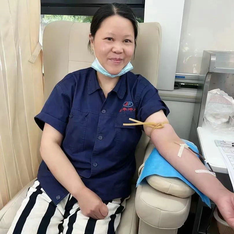 Mar fhreagra ar an nglao ar dheonú fola deonach, d'eagraigh Jufeng fostaithe chun gníomhaíochtaí deonacha fola a dhéanamh ar 30 Aibreán. Ag 8:20 r.n., thiomáin feithicil deonaithe fola saor in aisce Banc Fola Lár na Cathrach Shengzhou isteach sa mhonarcha go mall. Chuaigh fostaithe a bhí ag fanacht le tamall fada ar aghaidh láithreach agus chomhoibrigh siad go gníomhach leis an bhfoireann leighis chun tástálacha scagthástála éagsúla a dhéanamh, mar shampla foirmeacha clárúcháin a líonadh, brú fola a thomhas, agus tástálacha fola. Tá an próiseas modheolaíoch agus ordúil.
